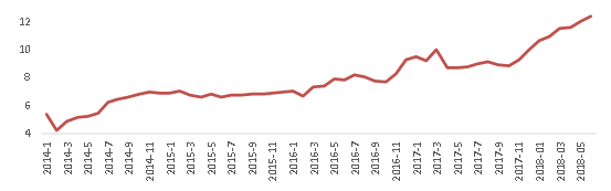 2016年以来平均借款期限呈现上升趋势,且自2017年12月57号文下发开始以更高的速率提升。2018年6月网贷行业平均借款期限为12.34个月,环比拉长0.32个月,同比拉长3.56个月。P2P平台平均借款期限拉长是监管整治持续加码,短期诈骗平台不断退出的结果。57号文的发布,更是明确了活期理财产品以及拆标、期限错配属于违规行为,很多平台为备案开始陆续清查此类项目,平均借款期限进一步快速拉长。