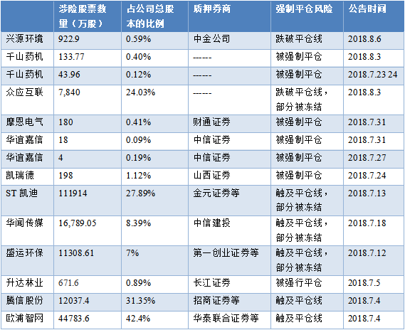 表3 2018年7月以来出现的强平事件