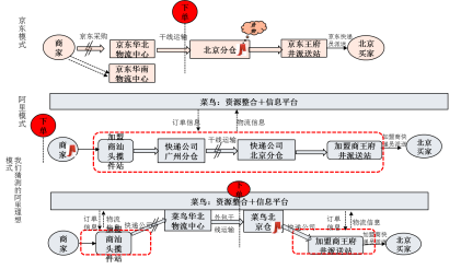 图6:京东、阿里物流体系对比