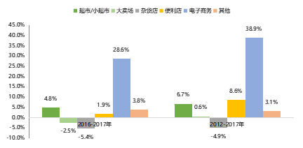 图7:快消品各渠道销售额复合增长率
