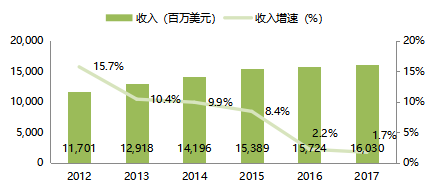 图2:2012年至2017年全食(Whole Foods)营收状况