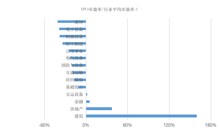 2014年1月12日证监会发布《关于加强新股发行监管的措施》,对发行新股的市盈率进行了一定限制,规定发行人应明确所属行业,并以中证指数发布的一个月静态平均市盈率作为定价参考,如果发行市盈率高于行业均值,需补充说明其风险因素。因此,A股IPO市盈率基本在17-22的区间内,一般不超过23(金融类IPO企业市盈率较低,如中信建投11.21、紫金银行10.85、中国人保8.87等),公司差异与行业差异均不显著。计算2018年IPO的行业平均市盈率,进一步用“IPO行业平均市盈率/对应行业平均市盈率-1”衡量首发市盈率偏离行业平均市盈率的程度。建筑行业的IPO企业中,中铝国际与新疆交建首发IPO分别为31.86和22.00,均高于建筑行业的平均市盈率(10.42),中铝国际也是2018年首发市盈率最高的IPO。而其他行业首发市盈率均要比行业IPO均值低30%左右,IPO抑价较为严重的行业包括食品饮料(该行业IPO首发市盈率均值/行业平均市盈率-1= -50.58%)、信息技术(-50.84%)、休闲、生活及专业服务(-61.48%)。