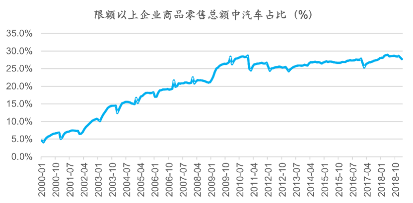 图表7:汽车在限额以上企业商品零售总额中占比达到28.6%