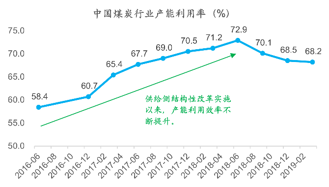 图表1:供给侧结构性改革后,中国煤炭行业产能利用率持续提升