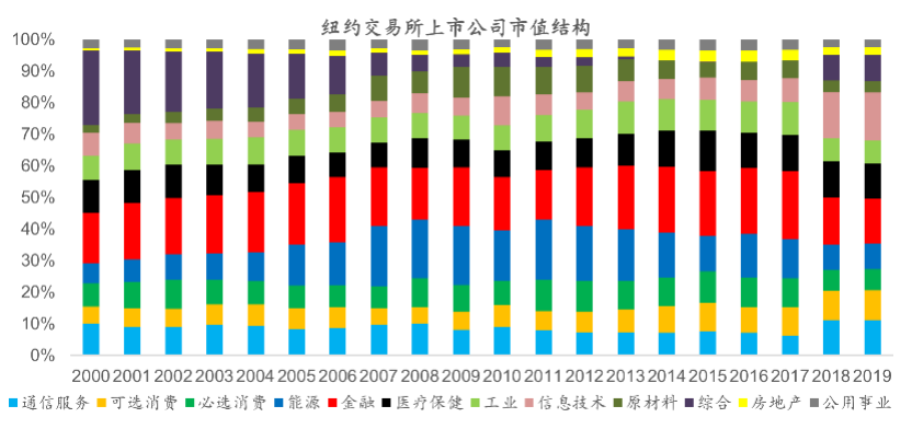 图表16:纽约交易所上市公司中通信服务、信息技术行业占比较高