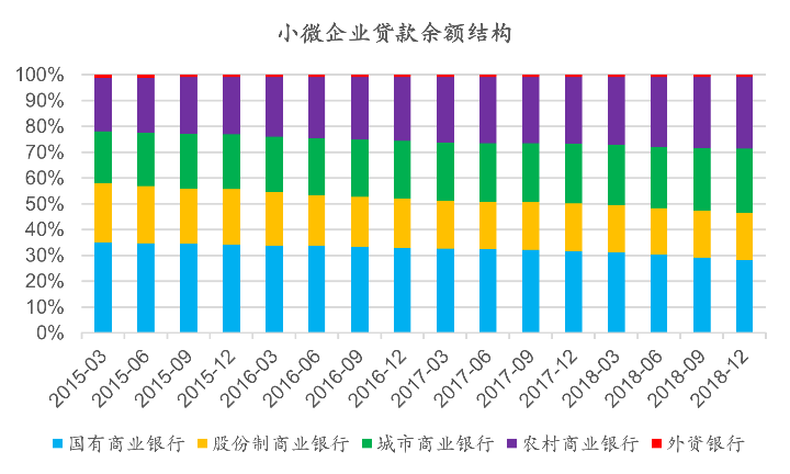 中国的商业银行体系表现出较为明显的结构分化,根据央行披露数据,七家大型国有银行占据了全行业51%的总资产规模,但整体上看,大型国有银行不是对民营和小微企业的信贷支持的主体,截止到2018年底,全行业小微企业贷款余额中,来自城商行和农商行的投放比例分别达到24.8%和27.6%。历史上看,大型国有银行的特长通常在于对公信贷的投放,而城商行、农商行等金融机构的信贷官通常更加熟悉本地经济与小微/民营企业情况,也能够更好地实现风险定价,这与对这些区域性银行服务当地经济的定位是相一致的,只有专业的机构做专业的事儿,才能够实现金融资源投放上的精细化管理,才符合金融供给侧结构性改革的题中之义。