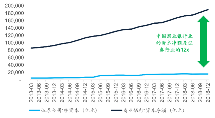 图表23:中国商业银行业合计资本净额是证券行业的12倍