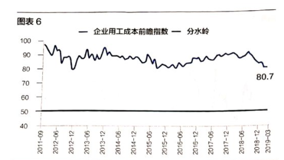 其中,成本端的指数为80.7,企业总成本前瞻指数为78.4,4月用工成本前瞻指数和总成本前瞻指数都有微幅下滑。从长期来看,这两个指数一直都处于高位,近期的下滑趋势值得注意,这可能是政府“减税降费”工作的结果。