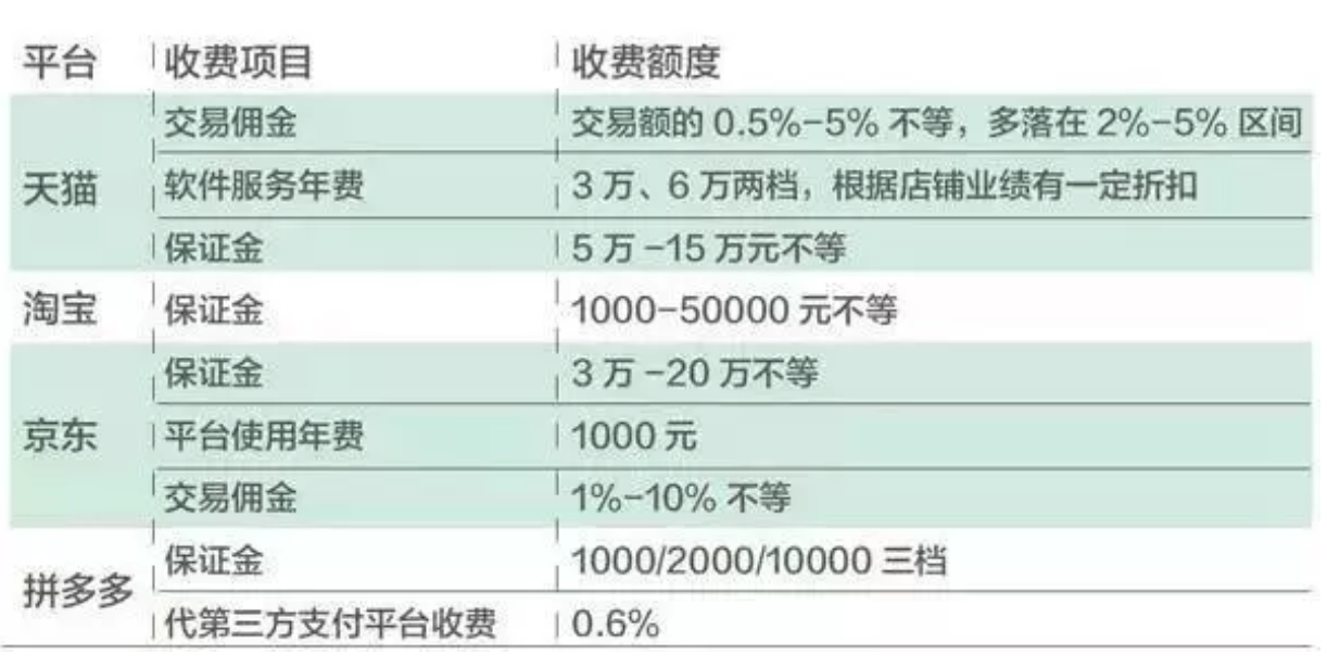 图表5. 各电商平台入驻成本对比资料来源:各电商平台官网,中信证券研究部