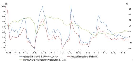 图:商品房销售额、销售面积累计同比增速及房地产业投资增速