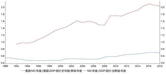 而这背后的主要逻辑在于货币派生,无论是贸易顺差政策下外汇占款增加导致基础货币增发,还是央行通过结构性货币政策降低准备金扩大货币乘数,体现在最终货币供应上是M2同比增速。2008年金融危机以来,中国通过商业银行向房地产业派生信用货币,导致M2/GDP持续攀升,并且带来企业与居民部门杠杆率的快速攀升,虽然房地产投资解决了短期内经济增长问题,但却一定程度透支了长期消费潜力,因而当前经济面临着增速下滑与去杠杆的双重重任。