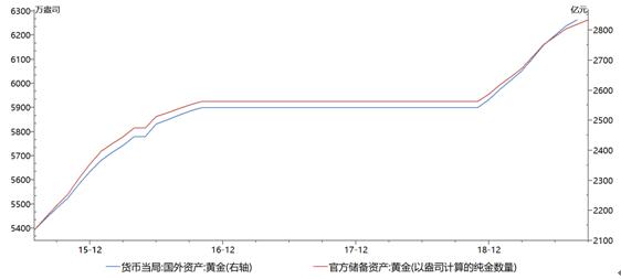 2018年12月以来,中国央行在连续26个月黄金储备未动情况下,连续10个月增持黄金,到9月份黄金储备6264盎司。不止中国央行,全球央行也在宏观经济下行预期中,减持美债,增持黄金。上一次全球央行集体购买黄金,还得要追溯到1965年——布雷顿森林体系未解体之前,以法国为首的欧洲各国从美国黄金总库购买黄金,对抗美元下跌。