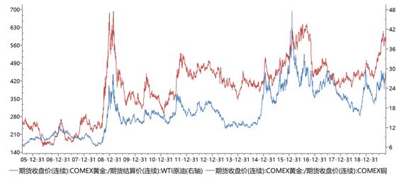 体现在盘面就是金油比、金铜比2019年来快速上升,到8月27日,金铜比已经超过600,金油比超过28,上一次金铜比超过600要追溯到2016年6月和2009年1月,金铜比超过600紧接着下行,金油比同样展现类似趋势。当前经济不确定依然存在,随着黄金价格上涨,金油比、金铜比很可能在2019年下半年双双创出新高。