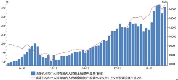 图:境外机构和个人持股票资产占A股票流通市值比年底来持续上升