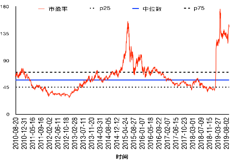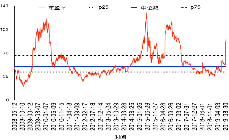 9月12日,中型综指、创业板综指的市盈率分别是89.7、148.2倍,分别对应85.6%、99.2%分位数。从市盈率上来看,中型综指和创业板综指的估值处于一个较高的位置。两个指数的市盈率的飙升,公司股价在年初一段时间内的上涨是一个原因,另一个原因是2018年下半年和2019年上半年这段时间内公司业绩不佳。