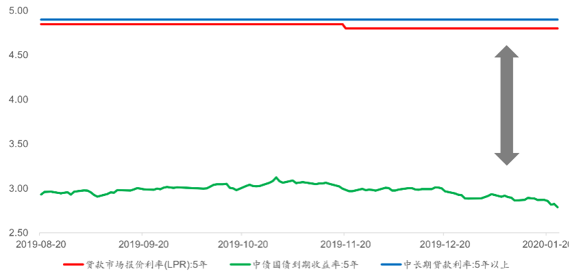 2018年以来,中国央行不断通过降低存款准备金率的方式,进行“量”的宽松,我们预计2020年这种宽松将更多体现在“价”上,即通过推动利率双轨制的并轨,打通资金价格的传导渠道,进而切实降低实体经济的融资成本。事实上,早在2019年三季度的《货币政策执行报告》中就提及“抓紧研究出台存量贷款利率基准切换方案”,12月28日央行正式发布公告,将存量浮动利率贷款的定价基准转换为LPR,基准切换工作自2020年3月1日开始,原则上于8月31日之前完成。将贷款定价的基准利率切换到LPR能够加强官方利率和市场化利率之间联动的灵活性,能够更加有效地降低实体经济利率。