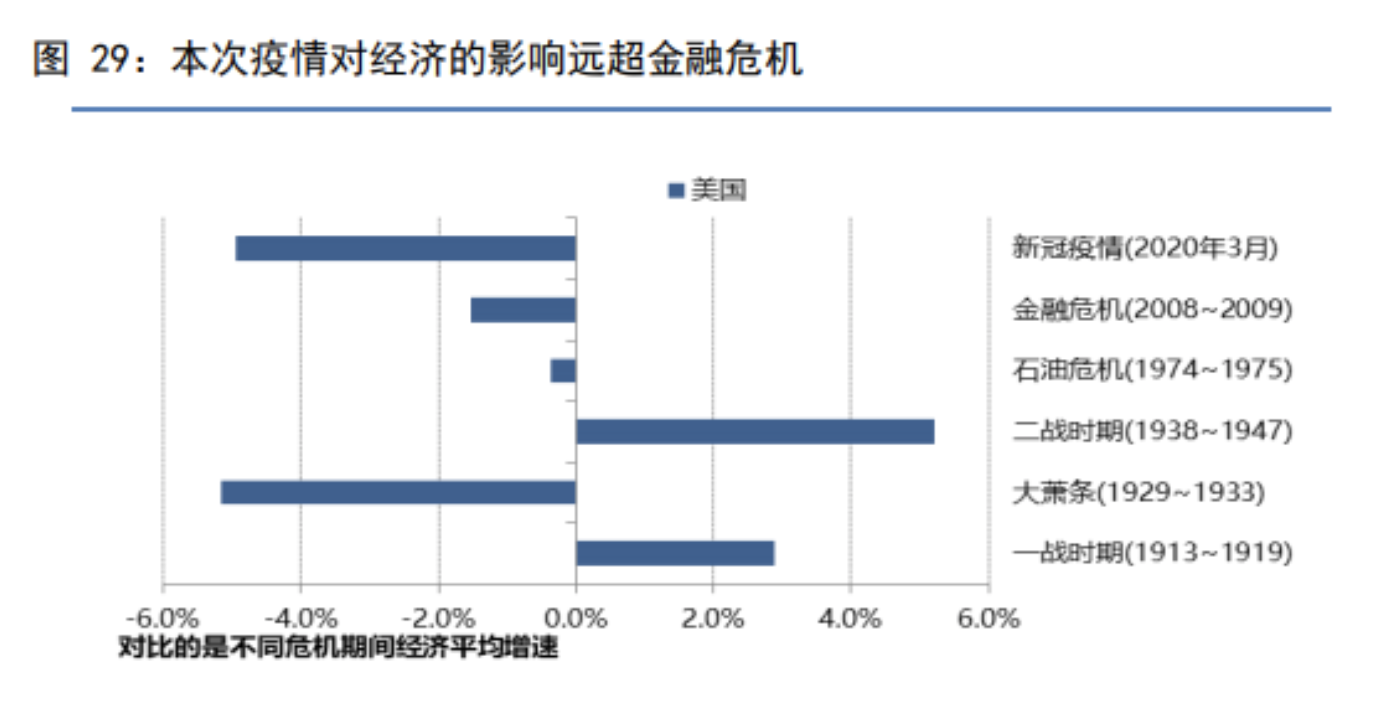 自20世纪20年代以来,100年间,全球经历了几次大的经济危机,其中备受瞩目的有1929年经济大萧条、二战时期、1974年石油危机、2008年国际金融危机。与这些大的经济危机相比,本次新冠疫情对经济的冲击究竟居于什么位置?