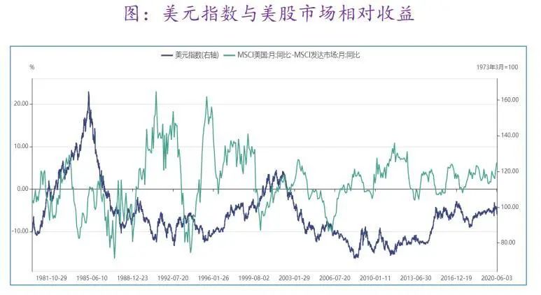 5)随着美国经济进入中后期,吸引资金回流美国的相对投资回报率和利率差减弱,美元升值开始放缓,甚至下降。