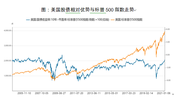 第一,从性价比角度来看,随着美债收益率上升,美股收益或将不再占有优势,这将引发资金向债市的再平衡。如下图,我们用标普500指数整体市盈率倒数来代表标普500收益率,最近随着美债收益率的快速上行,美债收益率相较标普500收益率优势在逐渐走强,已经到达历史顶部区域,而在这一位置,往往对应美股上涨乏力。