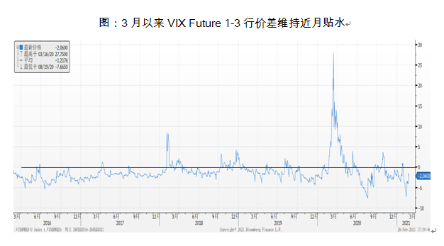 大部分时候,VIX 期货价格结构都是近月贴水结构,代表投资者更担心未来而非当下。但当价格结构反过来,近月价格比远月高的时候,代表投资者更担心接下来即将发生的事情。从下图来看,美债收益率快速波动并没有使VIX期货价格近月升水,说明投资者对当下风险的担忧依然可控。