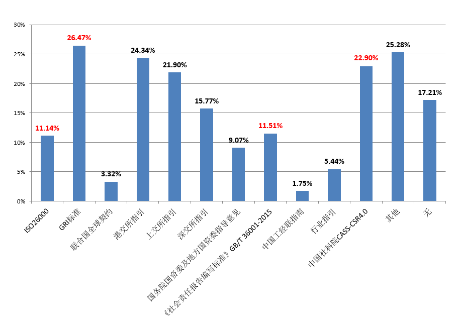 注:由于实践中一份可持续报告可能参考一个以上的标准,所以图1中的百分比总和大于100%。
