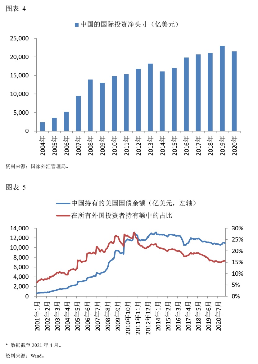 由于中国大量对外投资,这使得中国累积了巨额的外国资产,这点在中国的国际投资净头寸中反映得非常充分(图表 4)。国际投资净头寸是用一国对外的所有债权减去对外的所有债务,正数代表代表该国是个债权国,负数代表该国是个债务国。