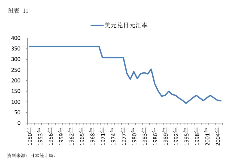 这方面我们可以看看二战后的日本。在布雷顿森林体系的早期,日本将美元兑日元的汇率固定在1:360的水平上,此后日本经济高速发展,汇率也逐渐升值(图表 11)。本来日本制造的品牌含义是低价低质,但在汇率升值后,这样的模式越来越玩不转了,于是日本企业开始大量投资研发,努力打造高端形象,由此诞生了包括索尼和丰田等在内的一系列国际大品牌。今天的日元汇率早已升值了数倍,但日本并未出现经济严重受损和大面积失业的问题,相反,日本品牌发生了脱胎换骨的改变,出口产业逐渐聚焦于高附加值产品,这样的改变难道不是我们希望中国出口业未来也实现的吗?所以我们应该按经济规律办事,假如本币升值之后有一些出口企业活不下去,那就应该让它们破产倒闭,而不是用汇率去救它们。在43年的改革开放之中,中国企业就是在破旧立新中成长起来的,我们也应该对我们的出口企业抱有信心。