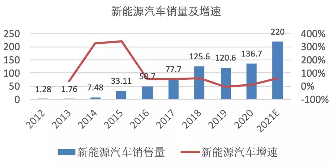 从燃油车向新能源汽车的转化速度在加速。据安永预测,欧洲、中国和美国市场的电动汽车销量将在12年内超过燃油车销量;据中汽协预计,未来五年中国新能源汽车销量年均增速40%以上。