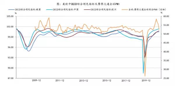 从整个经济周期来看,当前美欧中经济都存在高位见顶压力。8月摩根大通全球综合PMI收于52.60%,前值55.80%,连续三个月出现高位回落。8月美欧中OECD综合领先指标100.48、100.76、101.39,虽然未见拐点,但已至周期高位。