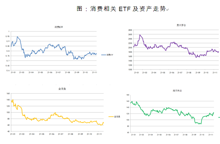 2021年6月以来,随着房地产政策的持续打压和互联网教育行业的严监管,以及在南京疫情、郑州洪灾和限电限产的影响下,中国经济与消费显著下行。三季度GDP同比增长4.9%,两年平均增速4.9%,一至三季度GDP当季同比增速分别为18.3%、7.9%和4.9%。三季度中国社会消费品零售总额10.6万亿元,同比增速5.0%,两年平均增速2.3%,拖累了中国经济。在经济与消费下行压力下,消费类资产价格也相应出现了回落。