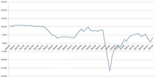 图:社会消费品零售总额当月同比增速(2021年为两年平均)