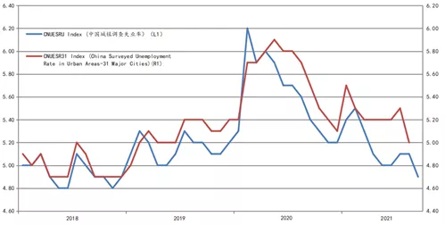 9月中国城镇调查失业率4.9%,31大城镇调查失业率5.0%,前值分别为5.1%和5.3%。