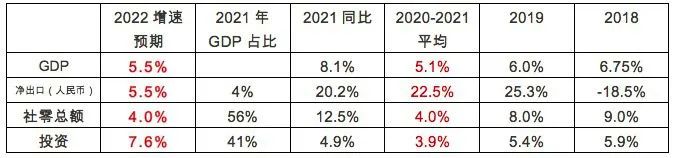 关注国内经济基建托底——中国实现5.5%经济增长目标以稳定就业,增加基建投资是一个关键选择。2022年面临着出口回落、疫情反复、住房不炒压力,基建投资承担着就业与经济增长重任,需要更加主动有为。