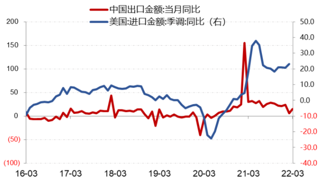 图:中国出口金额与美国进口金额同比增速