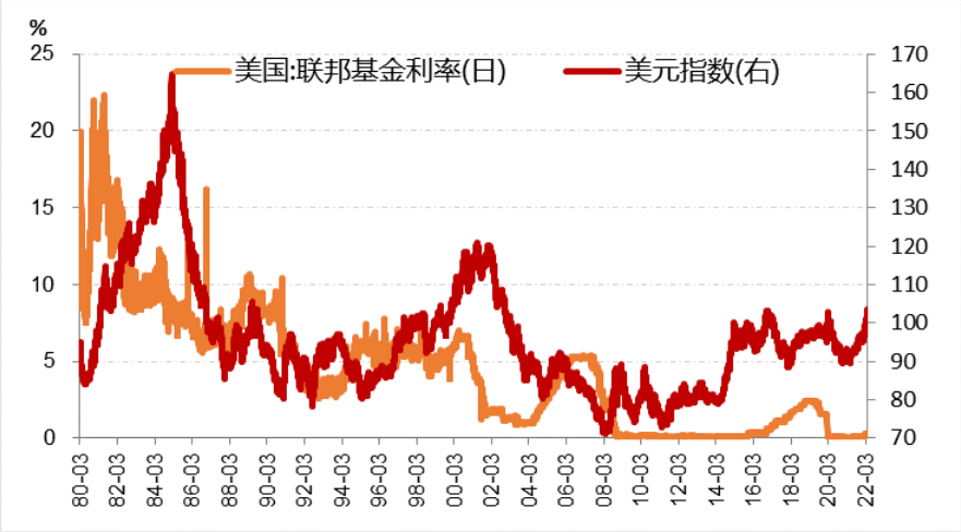 图:美元指数与联邦基金利率