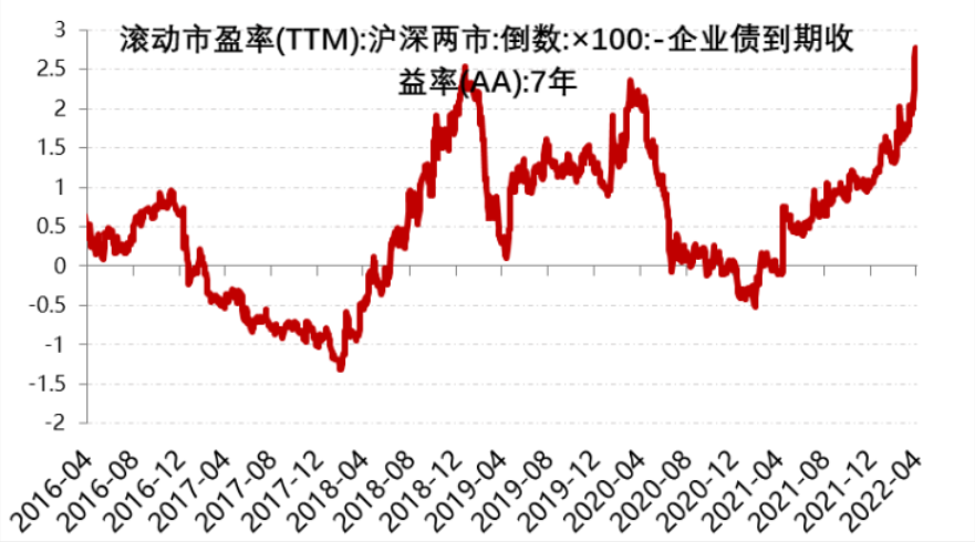 A股当前依然会是磨底过程,但性价比越来越高。一个直接的观察是,沪深两市收益率与企业债利差已经回到2018年来高点(下图),这代表沪深两市市盈率已经低到有足够收益率,能够跑赢企业债收益,沪深市场具有非常高的性价比。