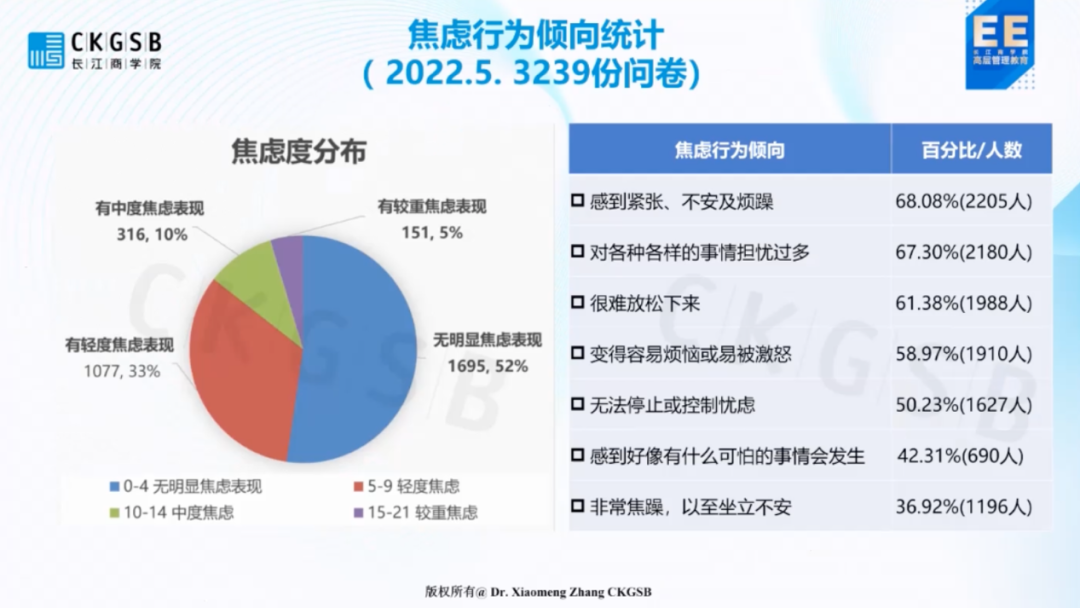 但是在我们的调研问卷中发现,同时期基层员工和基层管理者的心理复原力要远远低于一把手和高管,他们所面临的焦虑度和抑郁倾向更高。
