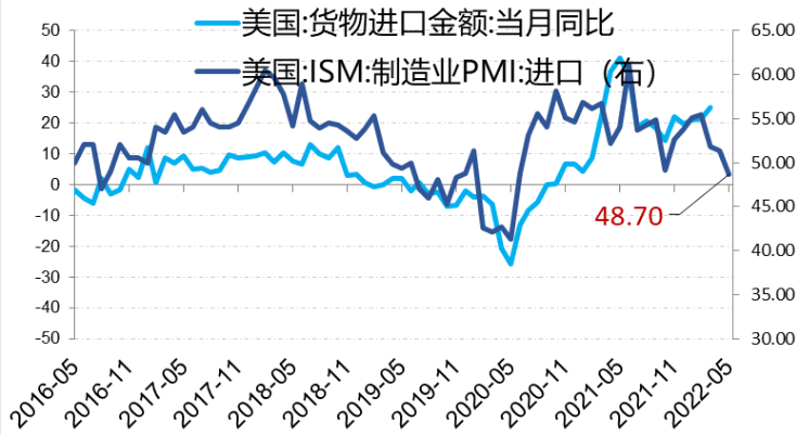 图:美国ISM 制造业PMI进口与美国货物进口金额同比增速