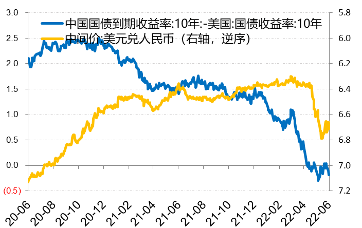 美联储加息将使中国面临资本流出压力。从资本流动来看,在过去的加息周期中,全球资金将重新回流美元——这是由美国经济、军事、教育等各方面实力决定的。当前中美国债利率已经出现倒挂(下图),这加大了人民币贬值与资金流出压力,将限制中国央行进一步货币降息空间。