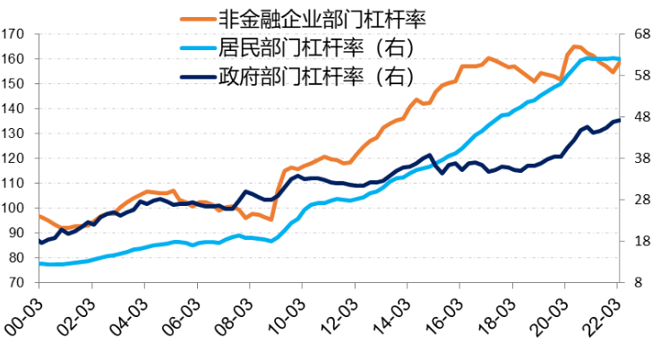 图:2021年中国各部门杠杆率居民62%、政府47%、企业155%