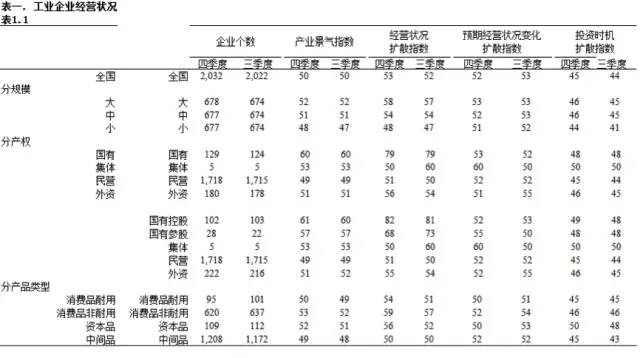 2. 产业景气指数 = (经营状况扩散指数+预期经营状况扩散指数+投资时机扩散指数)/3。