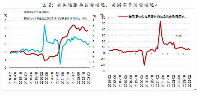 在传统的经济周期框架中,美联储开启加息缩表,社会需求与通胀应该出现回落。但尽管美联储联邦基金利率已经加至2008年来新高,美国通胀、薪资增速以及消费依然表现韧性(图2),让市场认为美联储能够在不增加失业情况下,让通胀着陆。