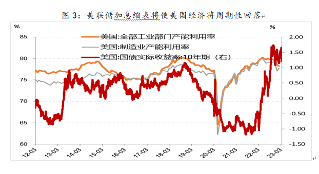 一个国家经济增长潜力根本上取决于资本、技术与劳动力。在美联储加息缩表周期下,资本变得稀缺,这使经济面临周期下行风险(图3)。同时,美国严格的移民政策使劳动力紧缺——2023年1月美国非农职位空缺数1082万人,失业人数638万人,即每份求职对应1.7个岗位。劳动力紧张推高了美国居民薪资增速与通胀,同时也整体限制了美国经济增长。