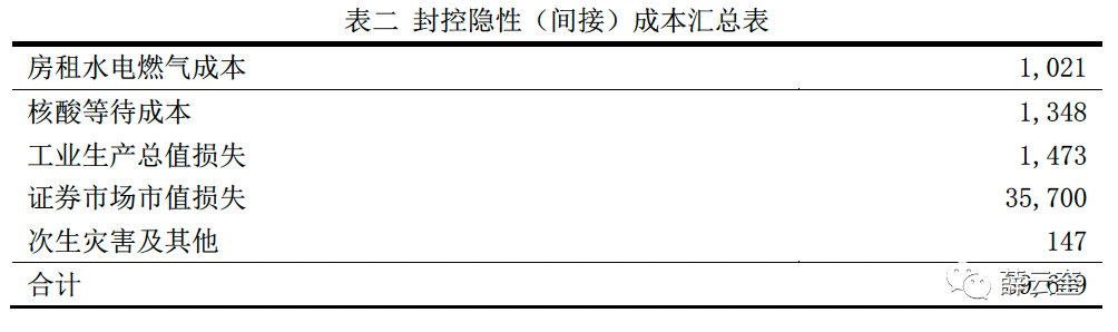 隐性(间接)成本考证结果为3.97万亿,平均每天的成本为763亿元。相关项目测算结果汇总如表二。