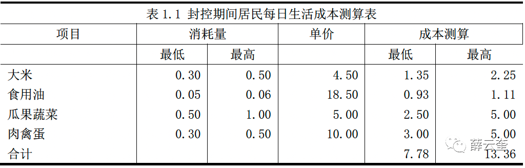 生活物资支出之所以成为封控成本,是因为封控剥夺了居民外出谋生的权利,使被封控区的居民从生产主体变成了消费主体,从收入扣减成本后尚有结余的生存模式,转变成了纯粹依靠政府救济的生存模式。于是,这类支出便成为封控的直接成本了。
