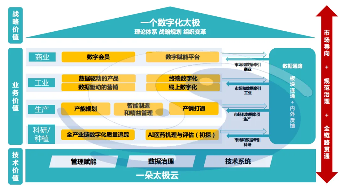 另一方面,优化内部管理,提升统筹一体和高效运行的规范治理体系。同时,通过数据的应用,实现内外部环节的互动,推动医药产业的现代化和国际化。