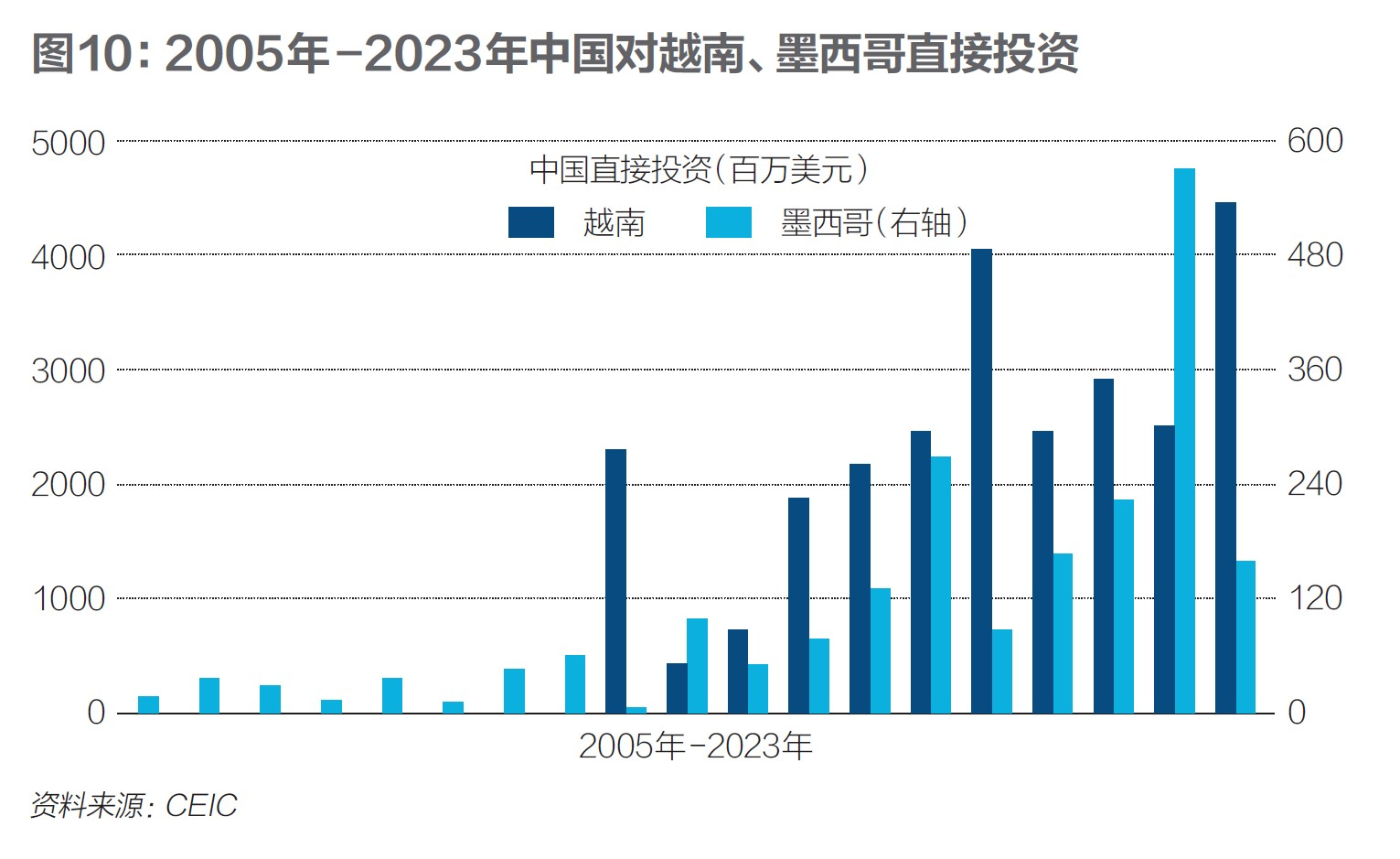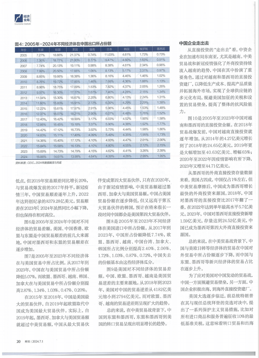 此外,中国也加大了对越南、墨西哥等国的直接投资,以降低对单一市场的依赖程度。