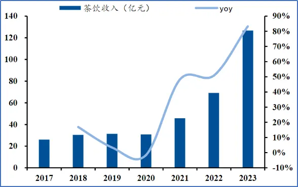 2023-2024年,饮料销售额呈现明显增长势头,这在整体消费趋势走弱的环境下令人印象深刻。同时,茶饮品类异军突起,曾被冠以“难喝”的东方树叶销售近乎翻倍,背后暗指饮料行业的潮流与风向。